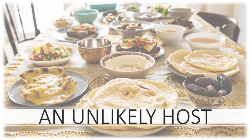 As Thanksgiving approached, our family worked to find a time for most of our adult children to come home for the day; and my mind began to recall Thanksgiving meals of the past. Our second Thanksgiving as husband and wife found us missing the big meal due to the extra early arrival of our tiniest blessings in 1984. I have no idea who actually ate the meal prepared by my sister in law at Gary’s parents’ home. Over the following years we took turns visiting my family or eating with Gary’s family . As our kids grew and our family expanded, we tended to have the meal in our own home more and more. Those memories of being a host have me remembering one of my favorite Bible stories – one of a very unlikely host.